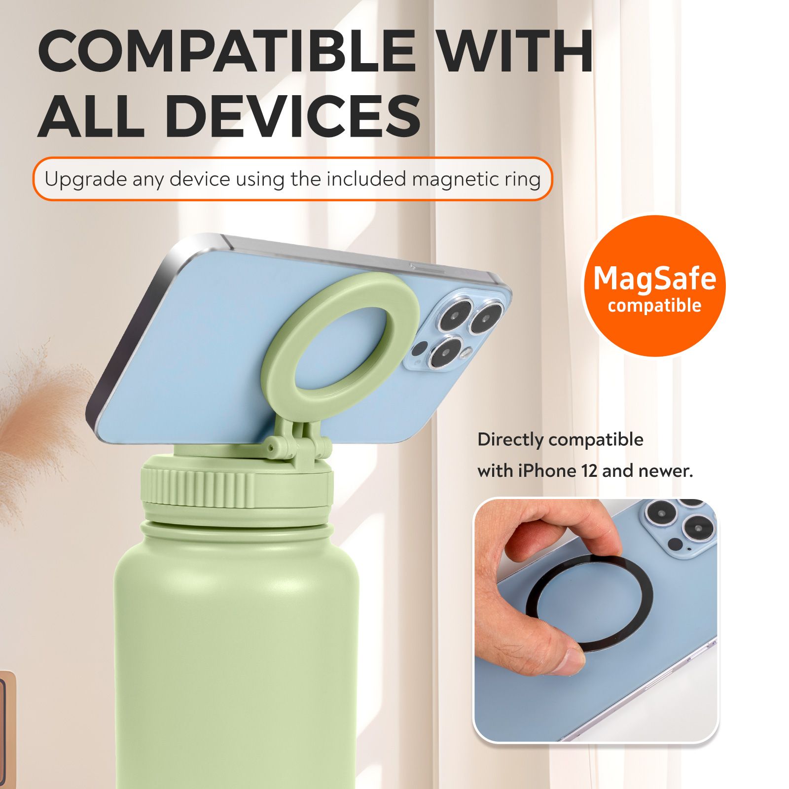 Thanks to its MagSafe-compatible magnetic ring, you can easily attach any smartphone—making it perfect for hands-free viewing and effortless hydration on the go.